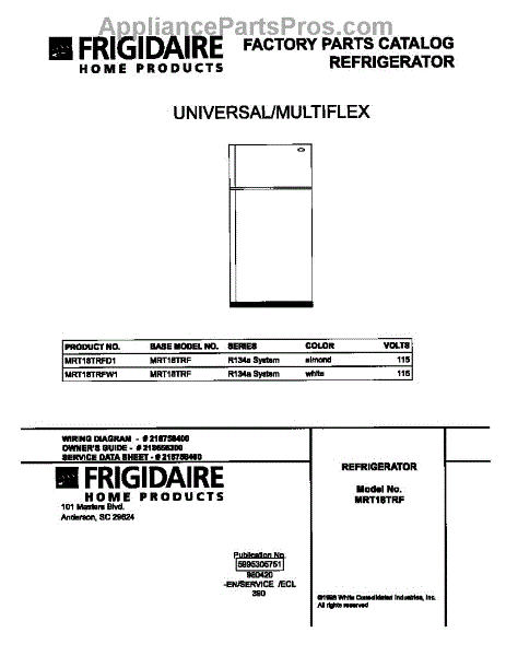 Parts for Frigidaire MRT18TRFD1: 01 - Cover Parts