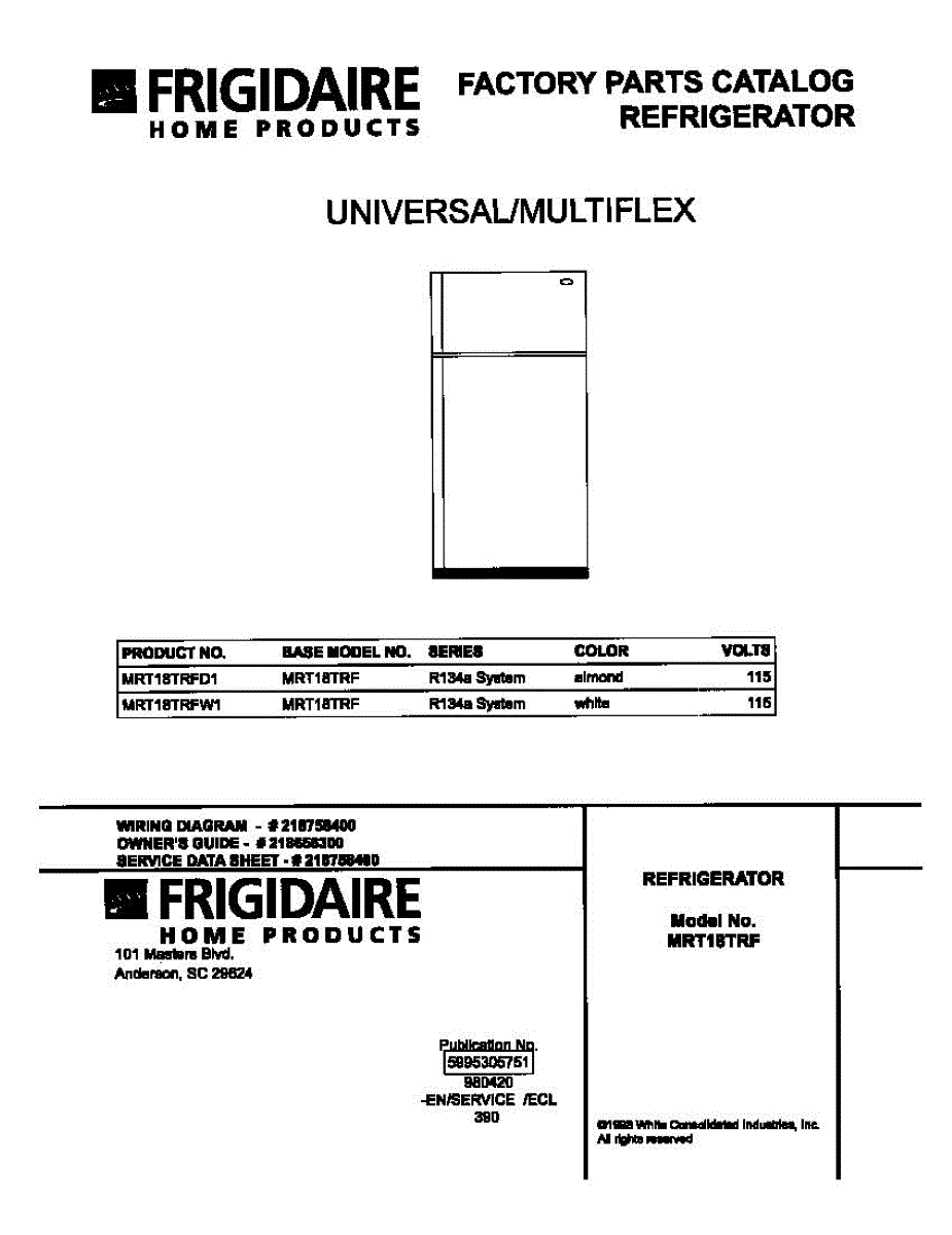 Parts for Frigidaire MRT18TRFW1: 01 - Cover Parts