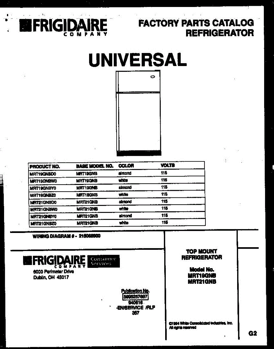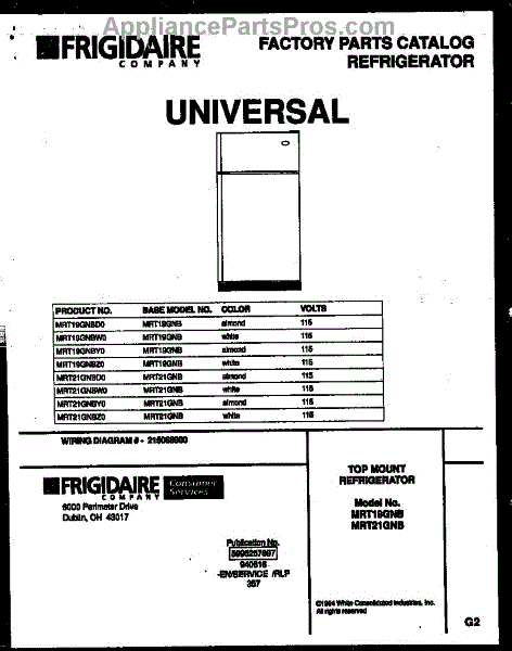 Parts for Frigidaire MRT19GNBW0: 01 - Cover Parts