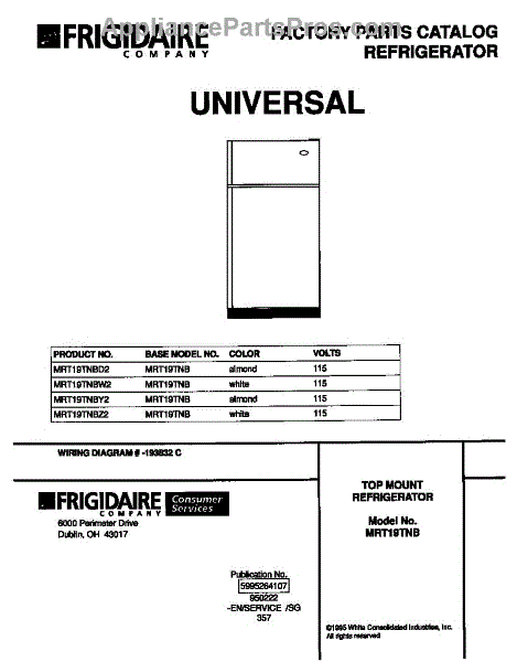 Parts for Frigidaire MRT19TNBD2: 01 - Cover Parts