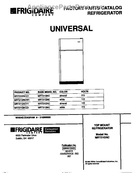 Parts for Frigidaire MRT21GNCD1: 01 - Cover Parts