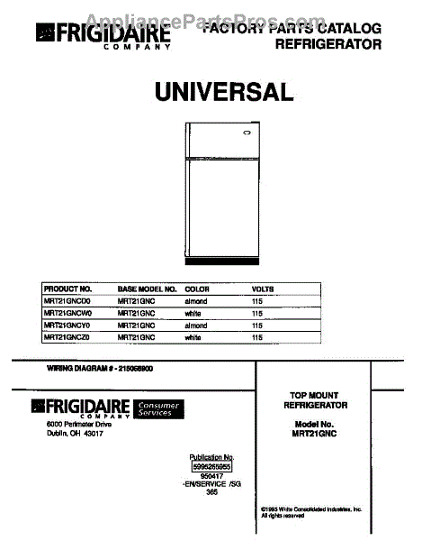 Parts for Frigidaire MRT21GNCY0: 01 - Cover Parts