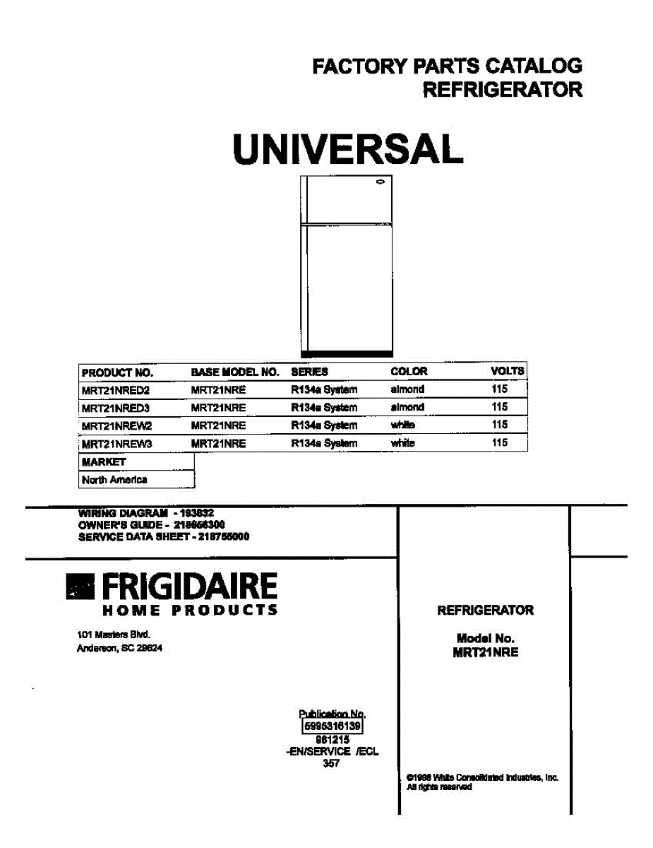 Parts for Frigidaire MRT21NRED2: 01 - Cover Parts