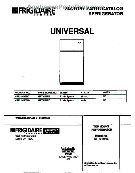 Parts for Frigidaire MRT21NREW0: 01 - Cover Parts