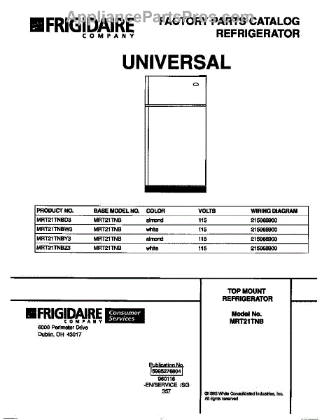 Parts for Frigidaire MRT21TNBD3: 01 - Cover Parts