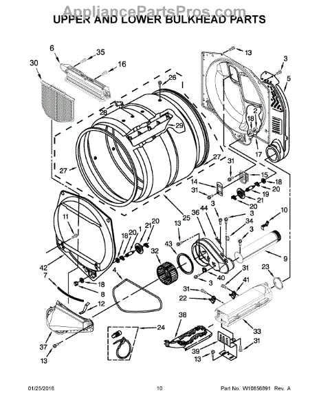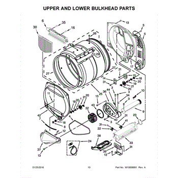 This front drum bulkhead is the stationary front panel that supports the dryer drum and seals the drum opening to maintain proper airflow and drum alignment for reliable drying performance. What it does: