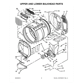 This front drum bulkhead is the stationary front panel that supports the dryer drum and seals the drum opening to maintain proper airflow and drum alignment for reliable drying performance. What it does: