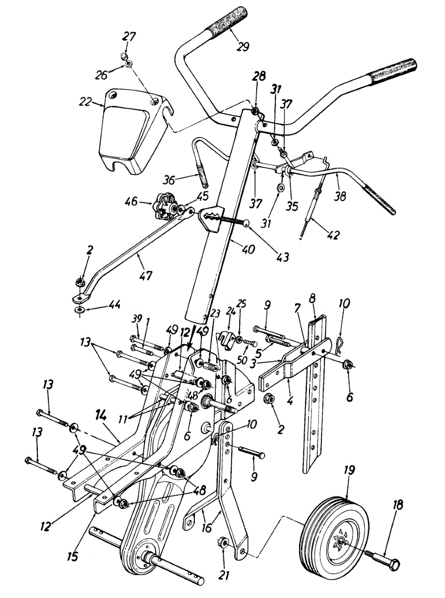 Hex nut for tillers and snow throwers. Secures various components throughout the machine. Replace if stripped, corroded, or missing during repairs.
