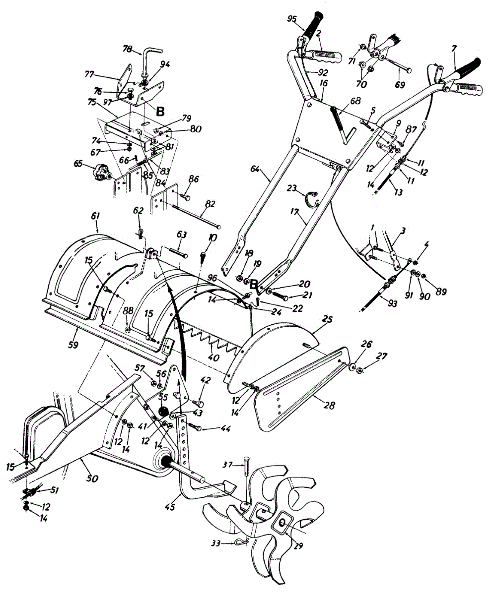 Replacement debris guard flap for rear-tine tillers. Shields operator from flying rocks and soil. Replace if torn, cracked, bent, or missing.