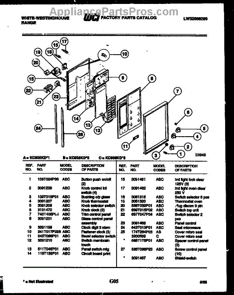 Parts for Frigidaire KC935KDW1: 11 - Upper Body Parts