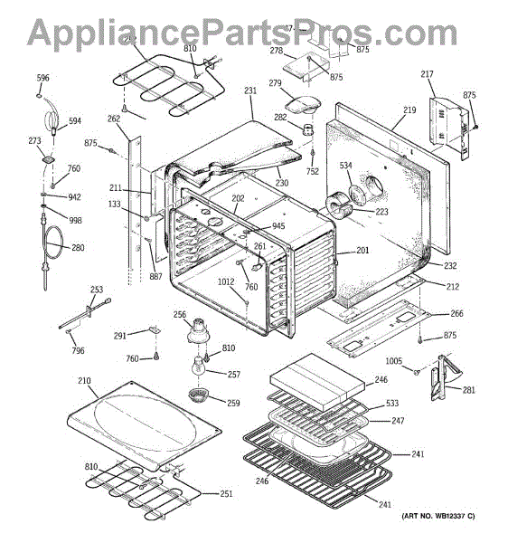 The Broiler Assembly is an OEM replacement part for GE range. Located inside the oven, it houses the heating elements responsible for the broil cooking function. Causes of a bad broiler assembly can include cracked or burnt-out heating elements that no longer ignite, damage from accidentally being cleaned with abrasive chemicals, or warping of metal components from overheating. Symptoms of a bad broiler assembly include: