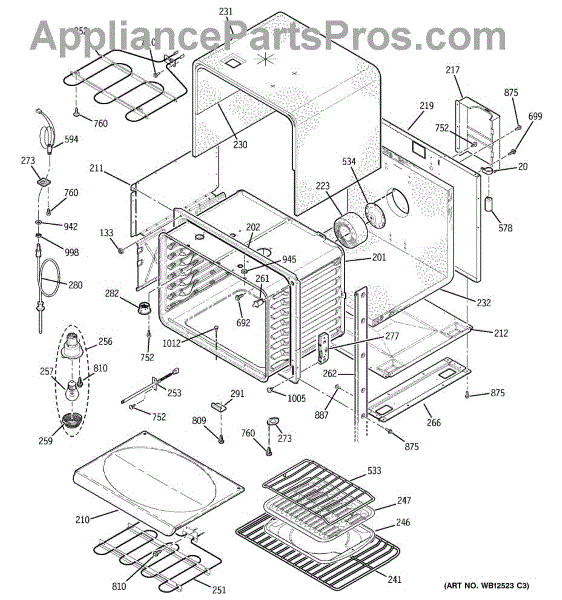 Oven cavity wrapper assembly forms the outer shell around the cooking chamber. Replace if cracked, damaged, or rusted to restore structural integrity.