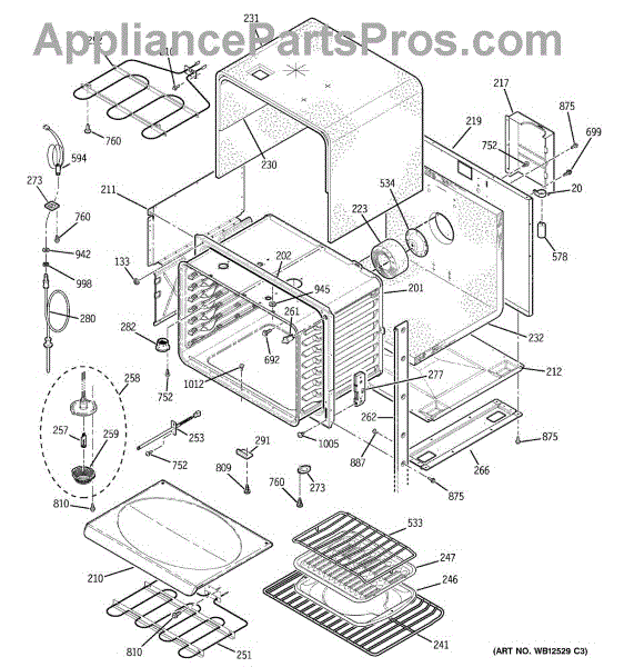 The Broiler Assembly is an OEM replacement part for GE range. Located inside the oven, it houses the heating elements responsible for the broil cooking function. Causes of a bad broiler assembly can include cracked or burnt-out heating elements that no longer ignite, damage from accidentally being cleaned with abrasive chemicals, or warping of metal components from overheating. Symptoms of a bad broiler assembly include: