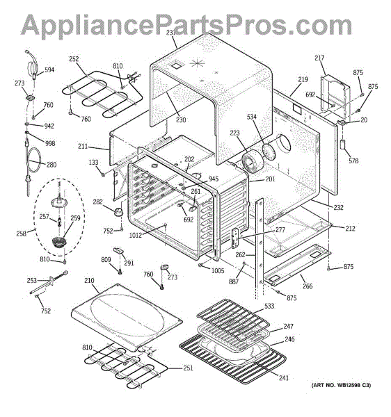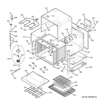 Oven cavity wrapper assembly forms the outer shell around the cooking chamber. Replace if cracked, damaged, or rusted to restore structural integrity.