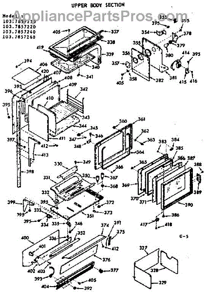 Parts for Kenmore 103.7857240 (1037857240, 103 7857240): Upper Body Parts
