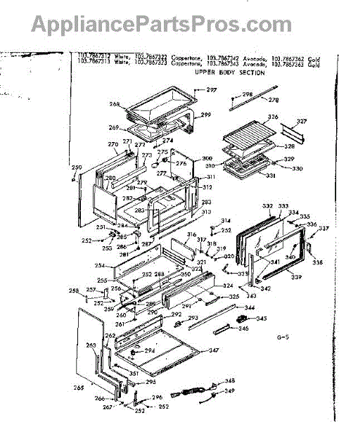 Parts for Kenmore 103.7867362 (1037867362, 103 7867362): Upper Body Section Parts