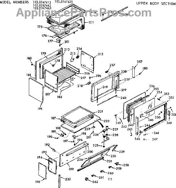 Parts for Kenmore 103.9747443 (1039747443, 103 9747443): Upper Body Section Parts