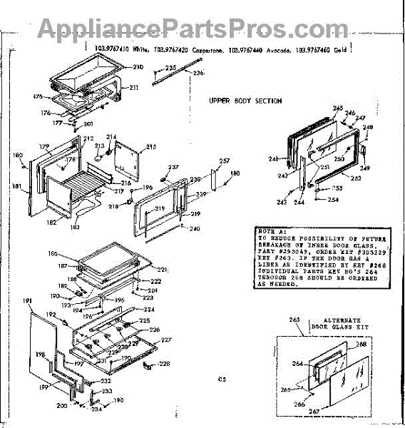 Parts for Kenmore 103.9767440 (1039767440, 103 9767440): Upper Body Section Parts
