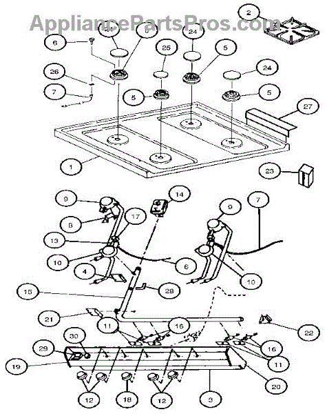 For top surface burners. Configuration: 2 + 0.