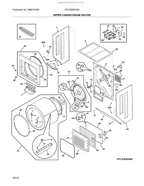 The Heater Assembly is an OEM part for Frigidaire laundry centers. It functions to safely provide the heat necessary for multiple laundry cycle options including both washer and dryer modes. The assembly works through an electric heating element to heat filtered air throughout clothing loads in the combined washer/dryer unit.