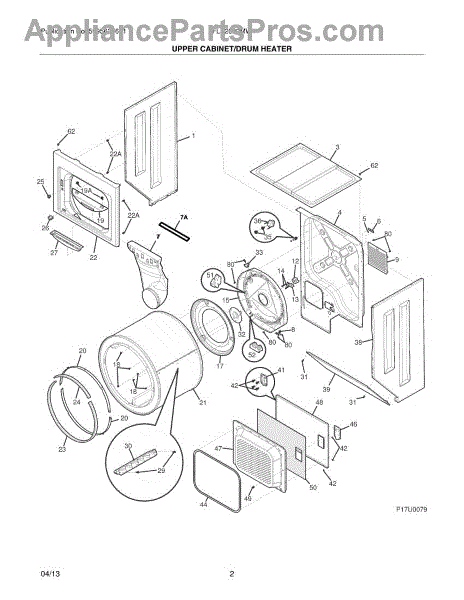 Parts for Frigidaire FFLE2022MW1: 03 - Upper Cabinet / Drum / Heater Parts