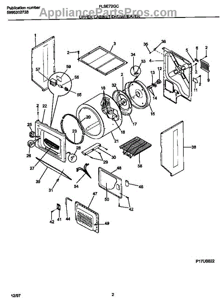 The Drum Bearing Bracket is an OEM replacement part for Frigidaire dryers. It holds and supports the drum bearing, which allows the dryer drum to spin smoothly during the tumbling and drying cycle. Causes of failure can be cracking or breaking of the bracket over time due to constant use and stress. Improper installation that puts strain on the bracket may also lead to issues. Symptoms of a bad drum bearing bracket include: