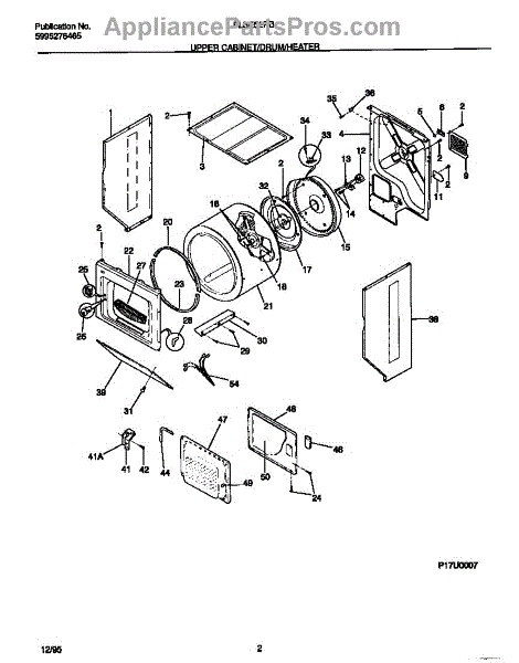 Parts for Frigidaire FLXE52RBT1: 02 - Upper Cabinet / Drum / Heater Parts