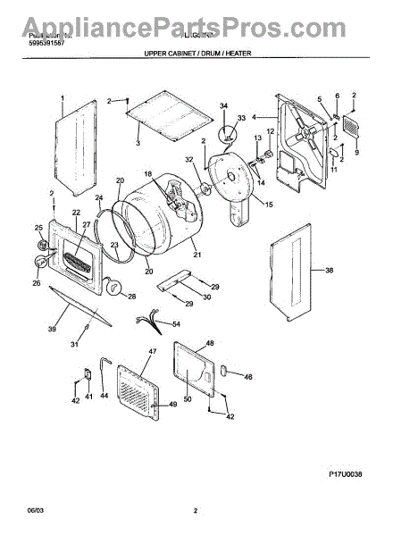 Parts for Frigidaire FLXG52RBSA: 03 - Upper Cabinet / Drum / Heater Parts