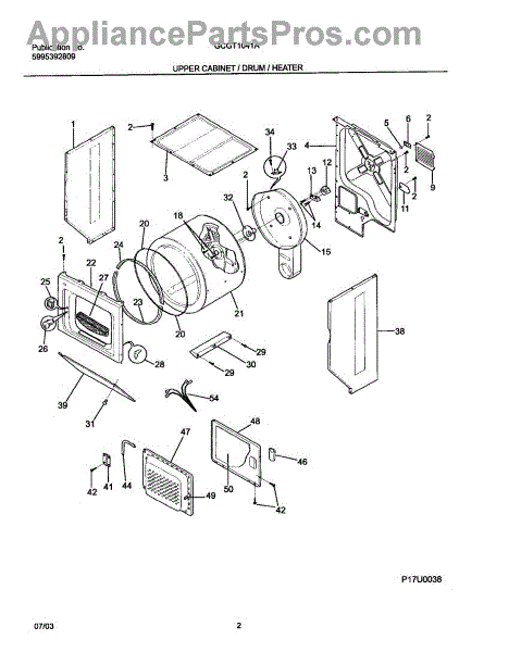 Parts for Frigidaire GLGT1041AS2: 03 - Upper Cabinet / Drum / Heater Parts