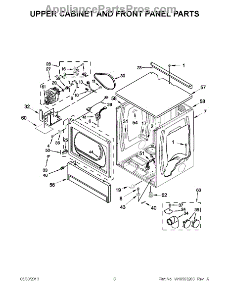 The Belt is an OEM replacement part for Whirlpool clothes dryers. This belt transfers power from the motor to the drum, causing it to spin and gently tumble dry clothes. Causes of belt failure typically relate to normal wear and tear over thousands of dryer cycles. As belts constantly rotate under tension, cracks and looseness can develop which affects their ability to grip smoothly. Physical damage from improper installation is another potential cause. Symptoms of a worn or broken belt include: