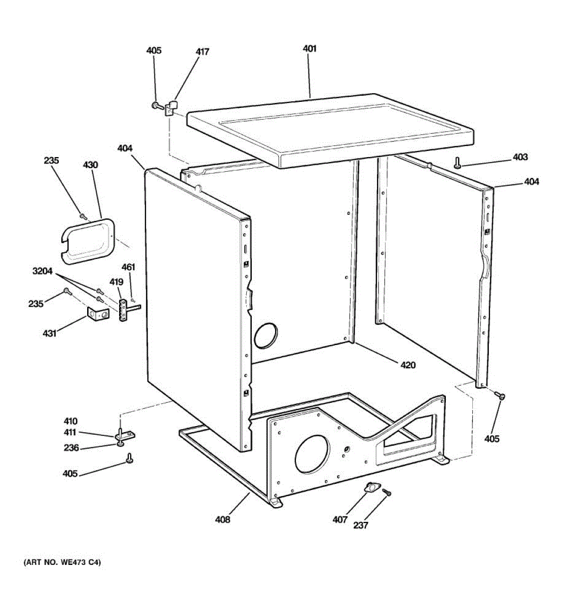 White side panel for dryer exterior cabinet. Replacement for cracked, dented, or damaged side body panels. Restores clean appearance to dryer.