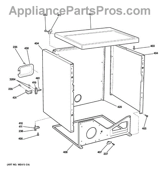 White side panel for dryer exterior cabinet. Replacement for cracked, dented, or damaged side body panels. Restores clean appearance to dryer.