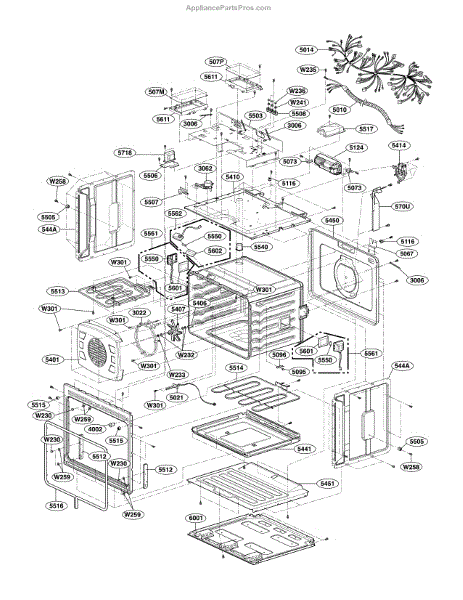 Parts assembly component for electric wall ovens. Replaces damaged, worn, or missing internal assembly parts. Direct fit for compatible LG models.