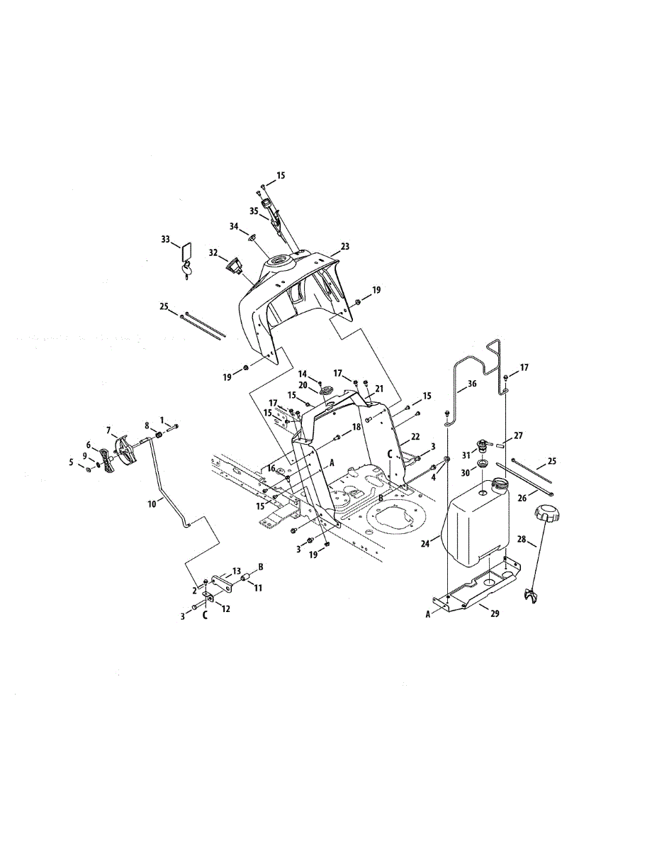 Replacement fuel cap for lawn tractors and riding mowers. Secures the fuel tank opening to prevent spills and debris entry. Order if cracked or missing.