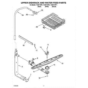 Upper spray arm with heatseal that restores water distribution to the dishwasher's upper rack for improved cleaning and rinsing. Replace a worn, cracked, clogged, or leaking upper spray arm to recover normal spray coverage. What it does: