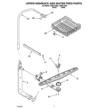 Upper spray arm with heatseal that restores water distribution to the dishwasher's upper rack for improved cleaning and rinsing. Replace a worn, cracked, clogged, or leaking upper spray arm to recover normal spray coverage. What it does:
