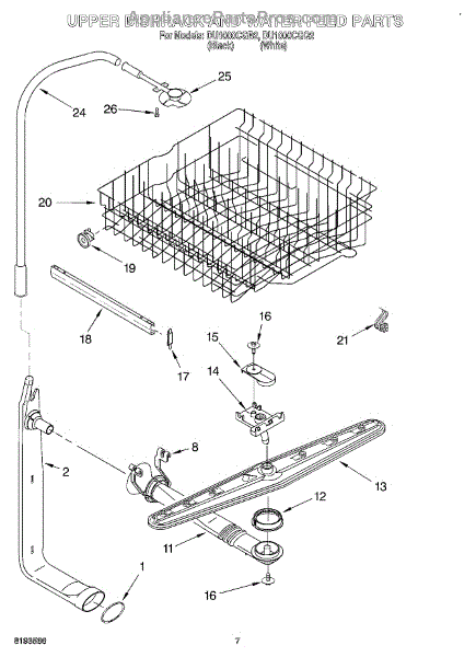 Parts for Whirlpool DU1000CGQ2: 05 - Upper Dishrack And Water Feed Parts