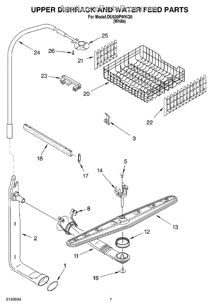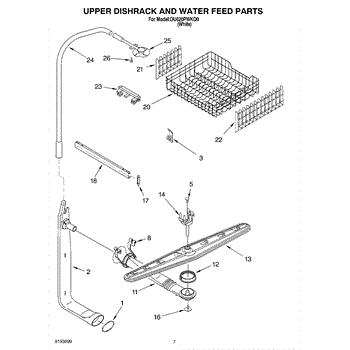 Upper spray arm with heatseal that restores water distribution to the dishwasher's upper rack for improved cleaning and rinsing. Replace a worn, cracked, clogged, or leaking upper spray arm to recover normal spray coverage. What it does: