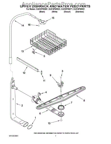 Parts for Whirlpool DU915PWWT1: 05 - Upper Dishrack And Water Feed Parts