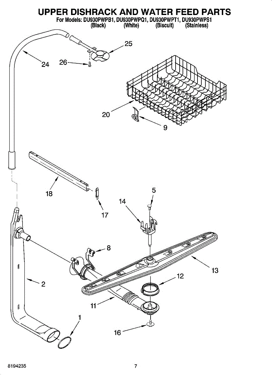 Parts for Whirlpool DU930PWPB1: 05 - Upper Dishrack And Water Feed Parts