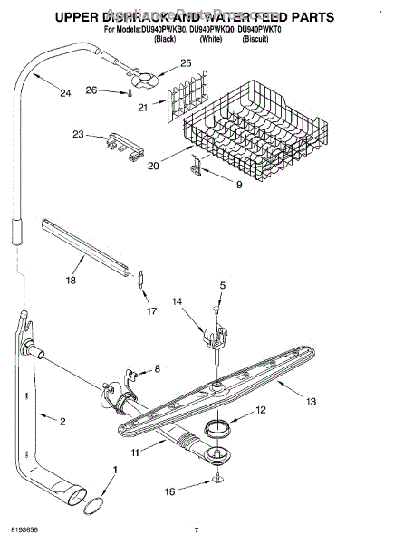 Parts for Whirlpool DU940PWKB0: 05 - Upper Dishrack & Water Feed Parts