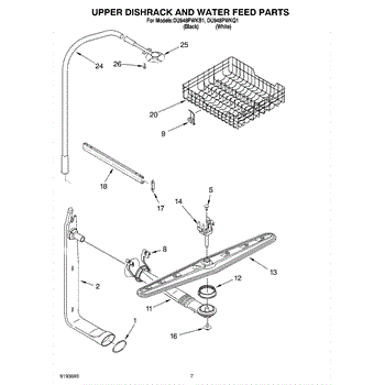 Upper spray arm with heatseal that restores water distribution to the dishwasher's upper rack for improved cleaning and rinsing. Replace a worn, cracked, clogged, or leaking upper spray arm to recover normal spray coverage. What it does: