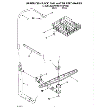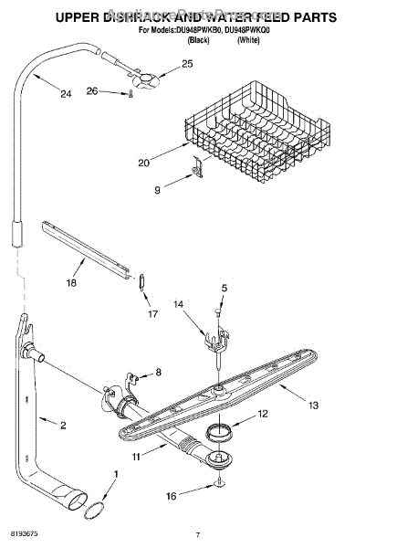 Upper spray arm with heatseal that restores water distribution to the dishwasher's upper rack for improved cleaning and rinsing. Replace a worn, cracked, clogged, or leaking upper spray arm to recover normal spray coverage. What it does: