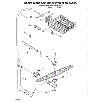Upper spray arm with heatseal that restores water distribution to the dishwasher's upper rack for improved cleaning and rinsing. Replace a worn, cracked, clogged, or leaking upper spray arm to recover normal spray coverage. What it does:
