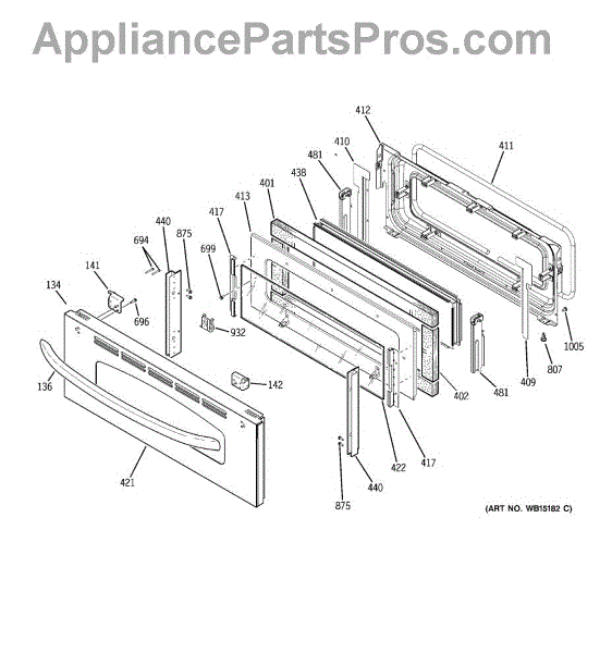 This right-side door trim bracket secures the exterior trim to the appliance door, restoring a flush, finished appearance and preventing the trim from coming loose. Designed to replace a damaged or missing right-hand bracket. What it does: