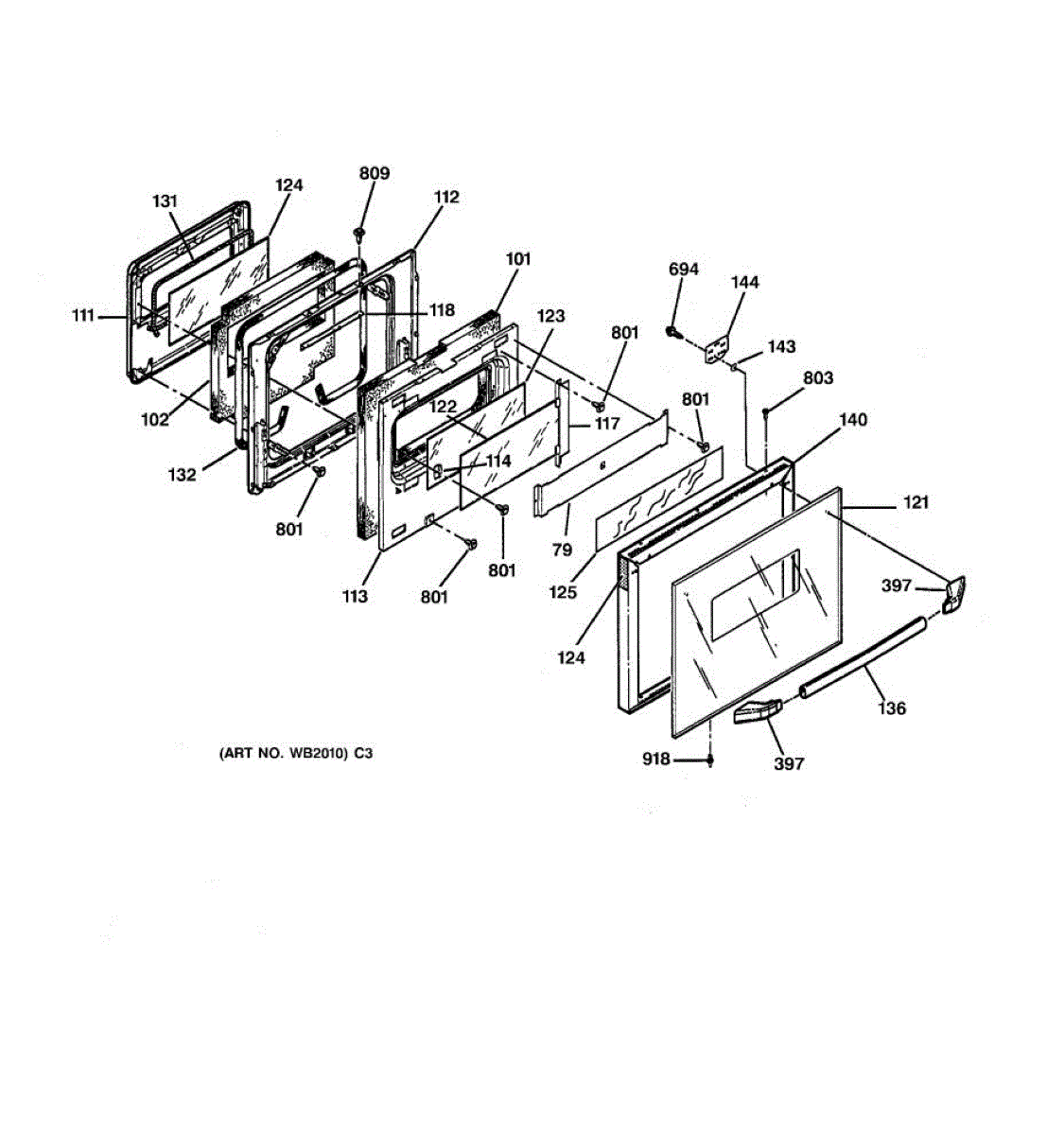 Center glass panel for oven door. Installs between inner and outer door panels. Replace if cracked, broken, or heat-damaged for safety and visibility.