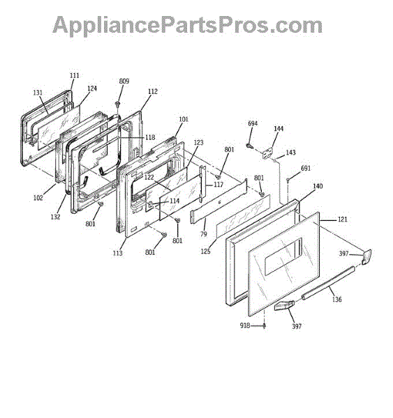 Parts for Ge JRP24BW3BB: Upper Door Parts