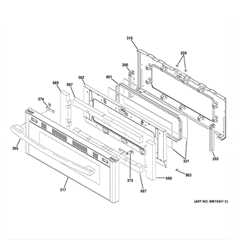 The Handle and End Cap Assembly is an OEM part for GE ovens. This assembly comprises the handle used to open and close the oven door, along with the end caps that secure the handle firmly in place. The handle measures 27.5 inches long