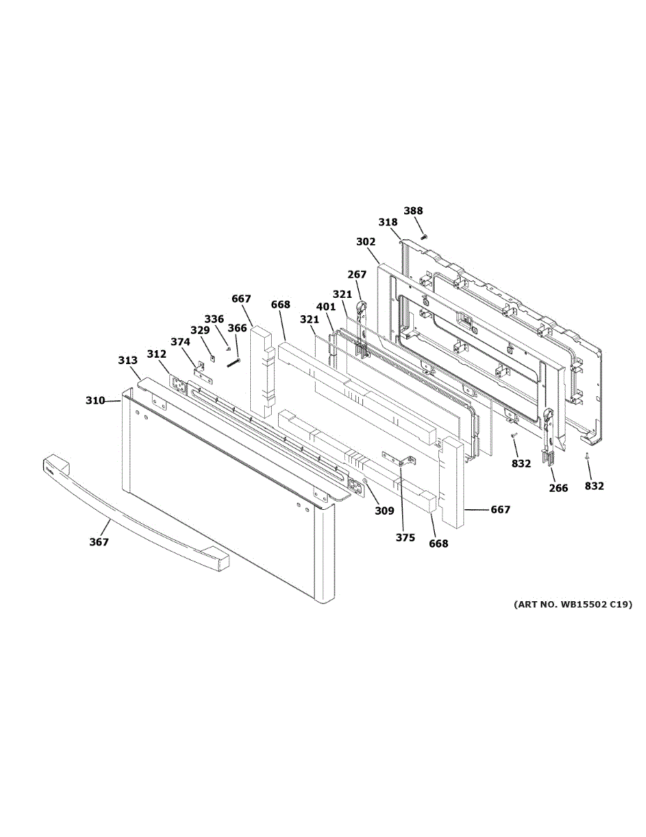 The GE Glass and Panel Door Assembly is an OEM component specifically designed for GE wall oven models. It consists of tempered glass surrounded by an outer steel panel door.