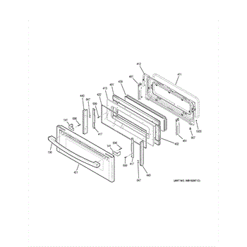 The Handle and End Cap Assembly is an OEM part for GE ovens. This assembly comprises the handle used to open and close the oven door, along with the end caps that secure the handle firmly in place. The handle measures 27.5 inches long